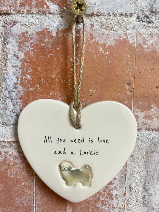 Lorkie Ceramic Heart Ornament