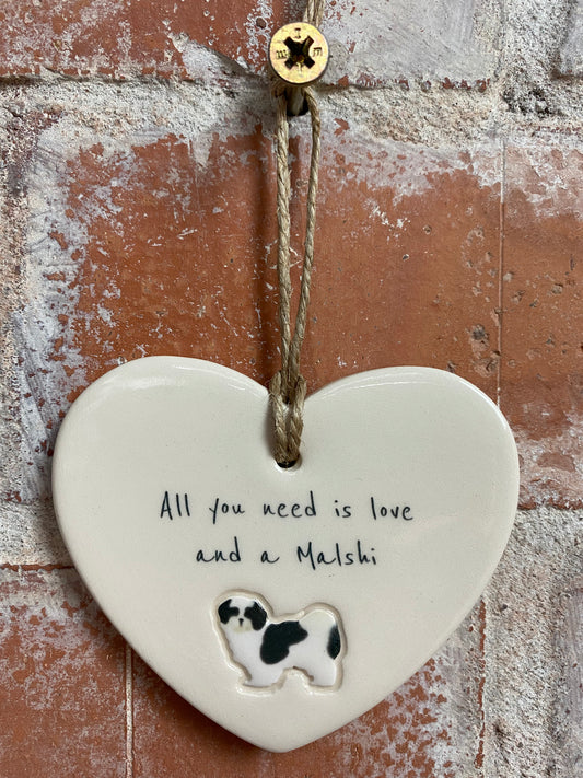 Maltipoo Ceramic Heart Ornament