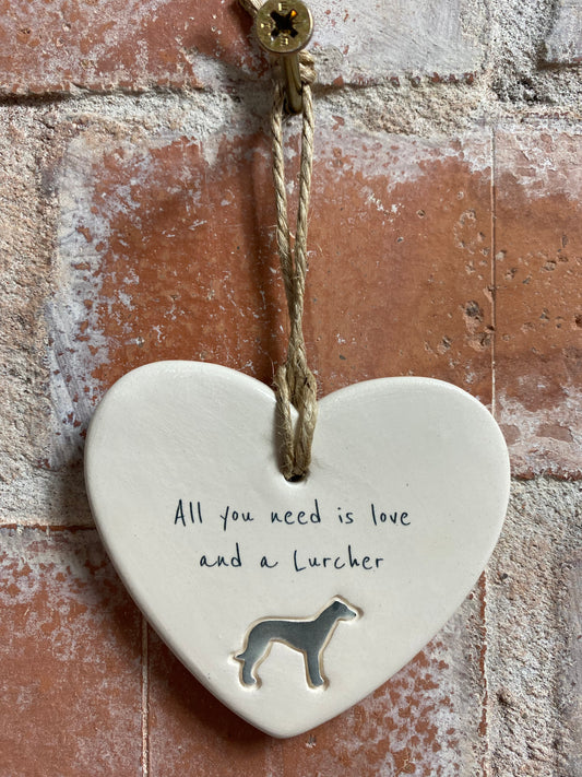Lurcher Ceramic Heart Ornament