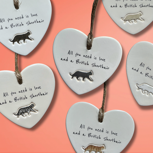 Your cat is a one-off, and their ornament should be too. Every piece is individually made by us, not churned out by a machine. We create and paint each ceramic heart by hand, taking our time to get the details just right, from a ginger Tom’s stripes to a black cat’s sleek silhouette. The result is a truly special piece of home décor made by people who understand the cat appreciation society.