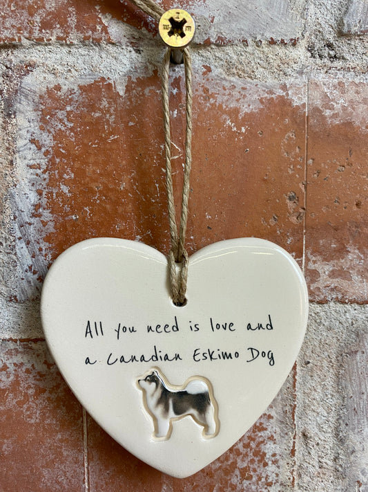 Canadian Eskimo Dog Ceramic Heart Ornament