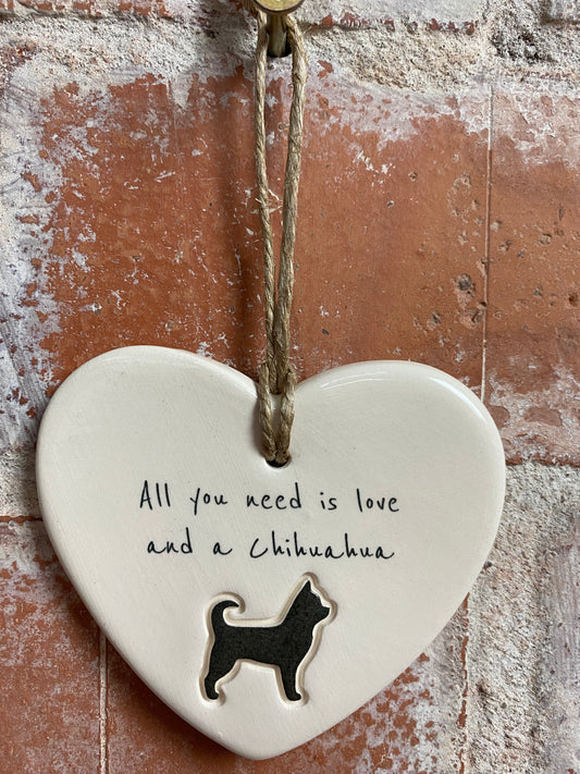 Chihuahua Ceramic Heart Ornament