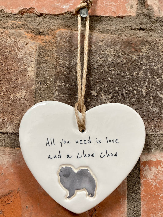 Chow Chow Ceramic Heart Ornament