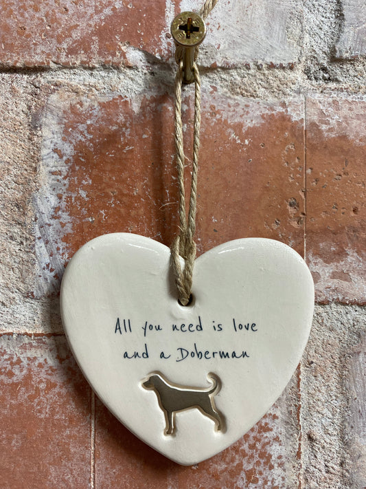 Doberman Ceramic Heart Ornament