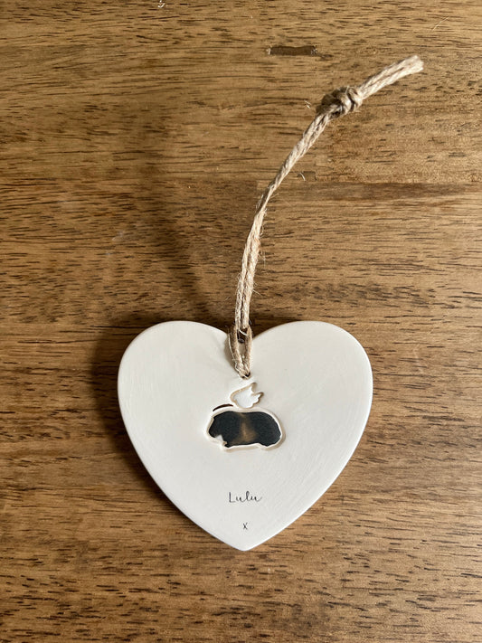 - Your order is designed and handmade in our Northumberland studio. Our pieces are made from the highest quality earthenware clay, painted to the closest closest colouring and marking match of your pet, then kiln fired to create a longlasting keepsake.