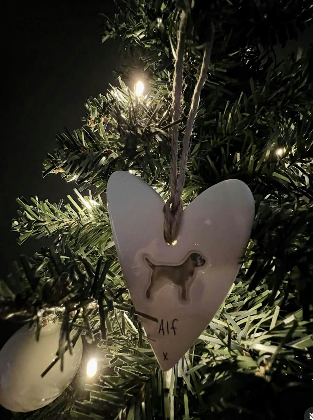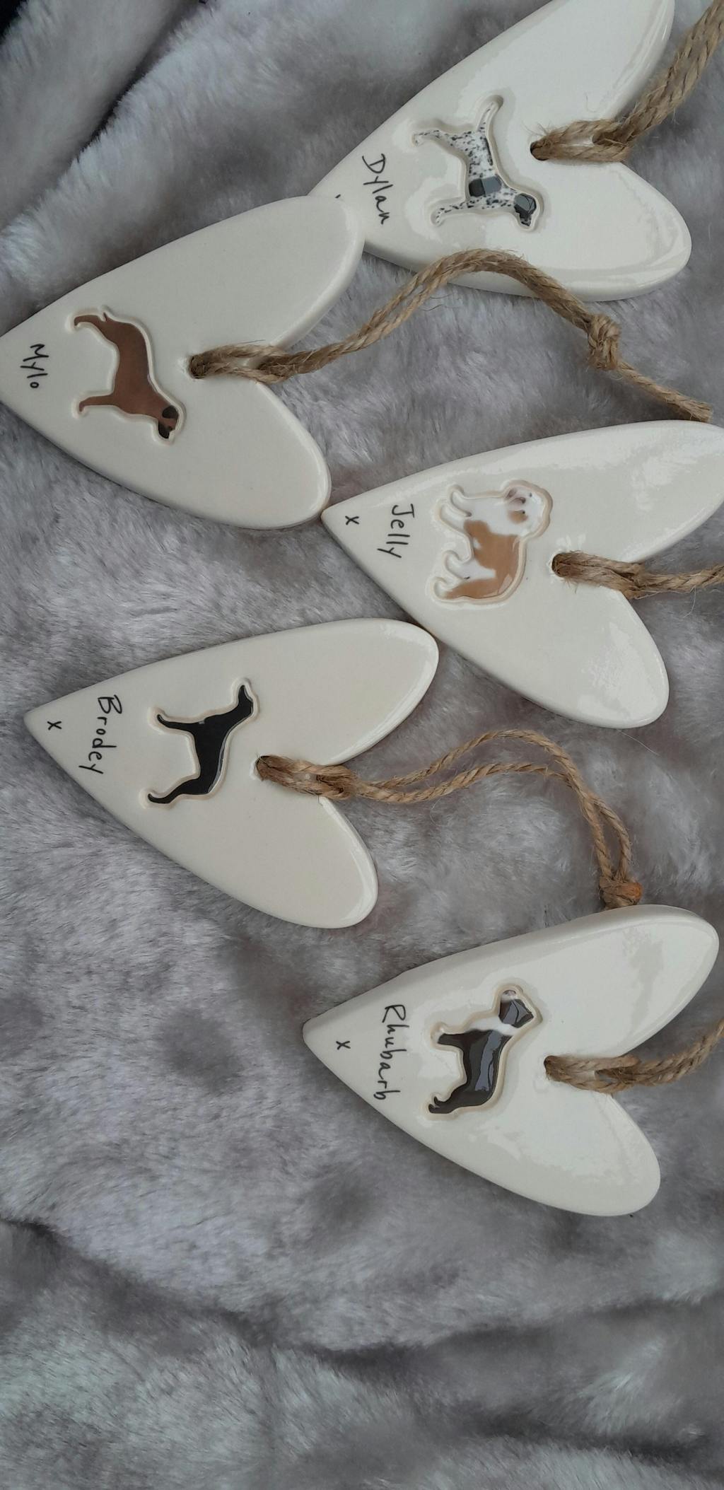 Beautiful decorations, one as a memorial and one still with us. Love how they have markings of our actual dogs, we will be hanging them up somewhere after Christmas too as they are too nice for just Christmas. Very happy overall.