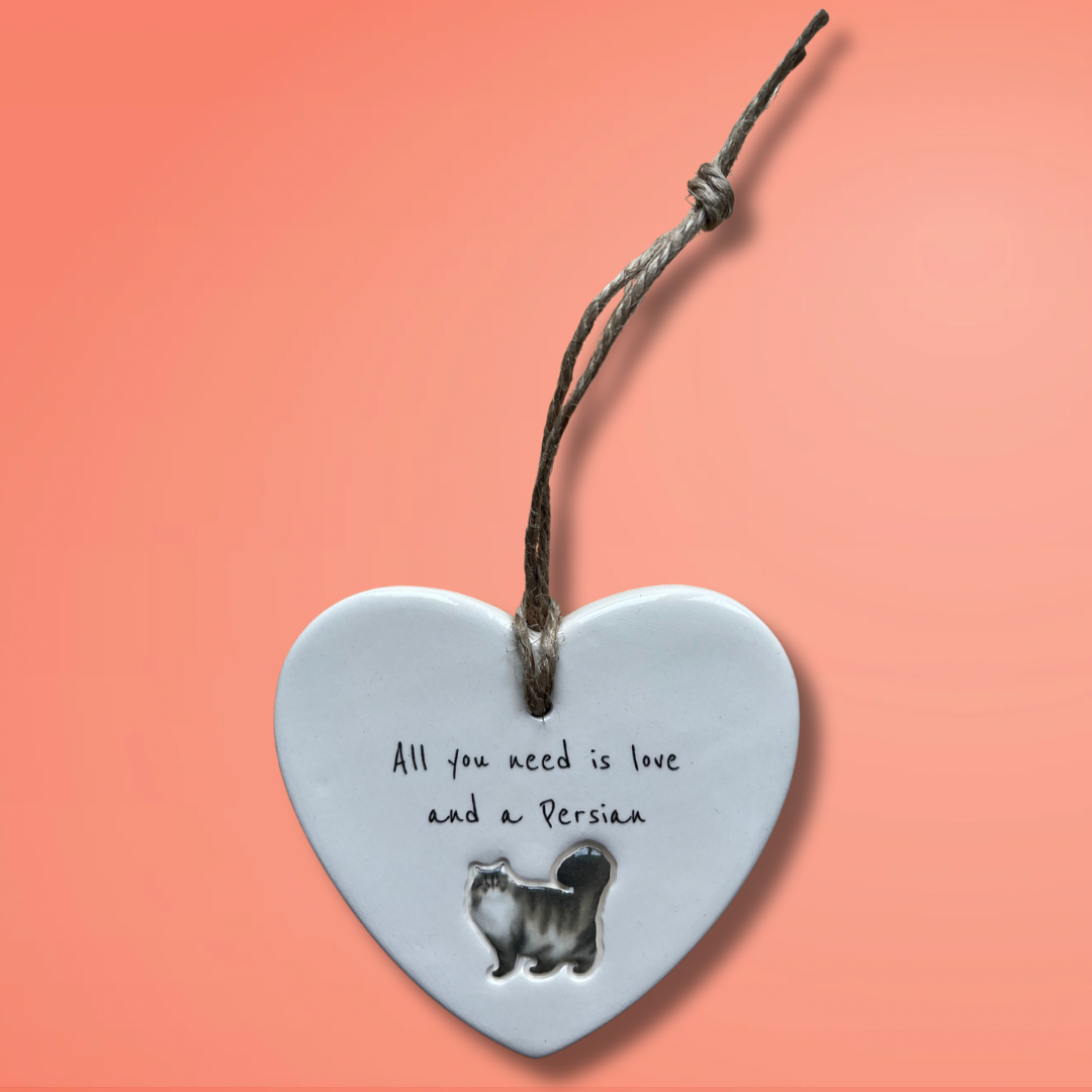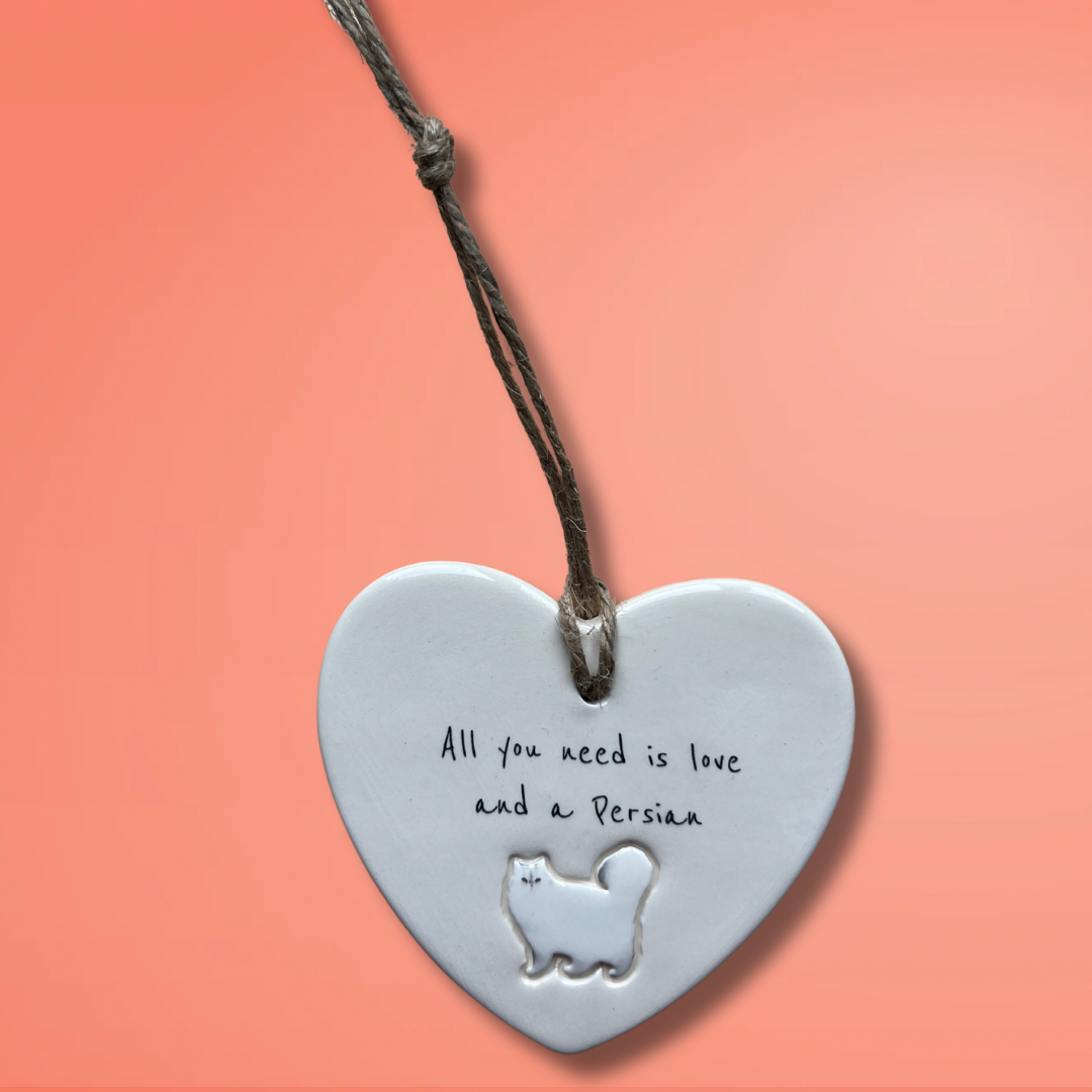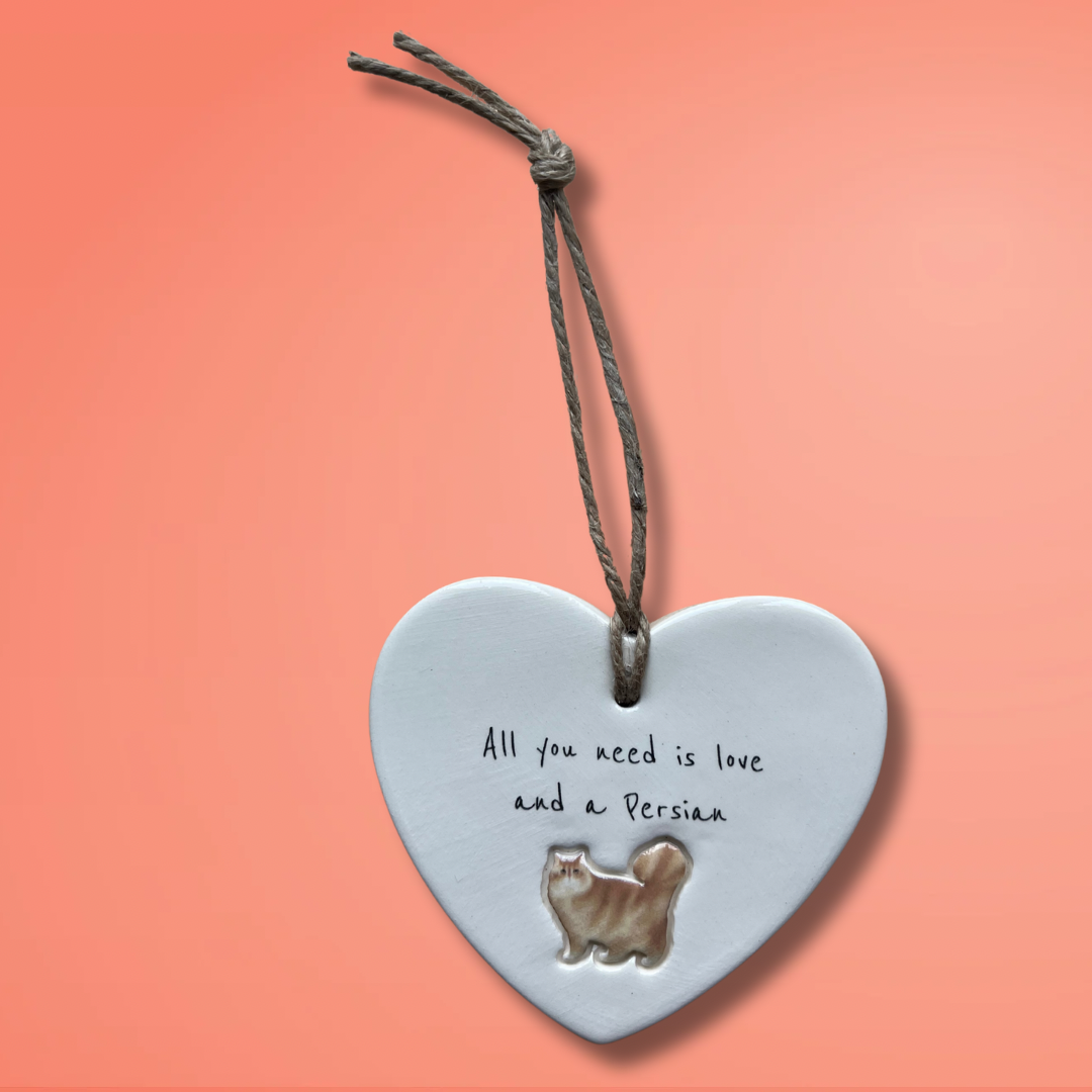 Bring a touch of feline charm to your home or surprise a loved one with this adorable 'All you need is love and a Scottish Fold' ceramic heart ornament. Designed and Handcrafted in our Northumberland studio using the finest earthenware clay.