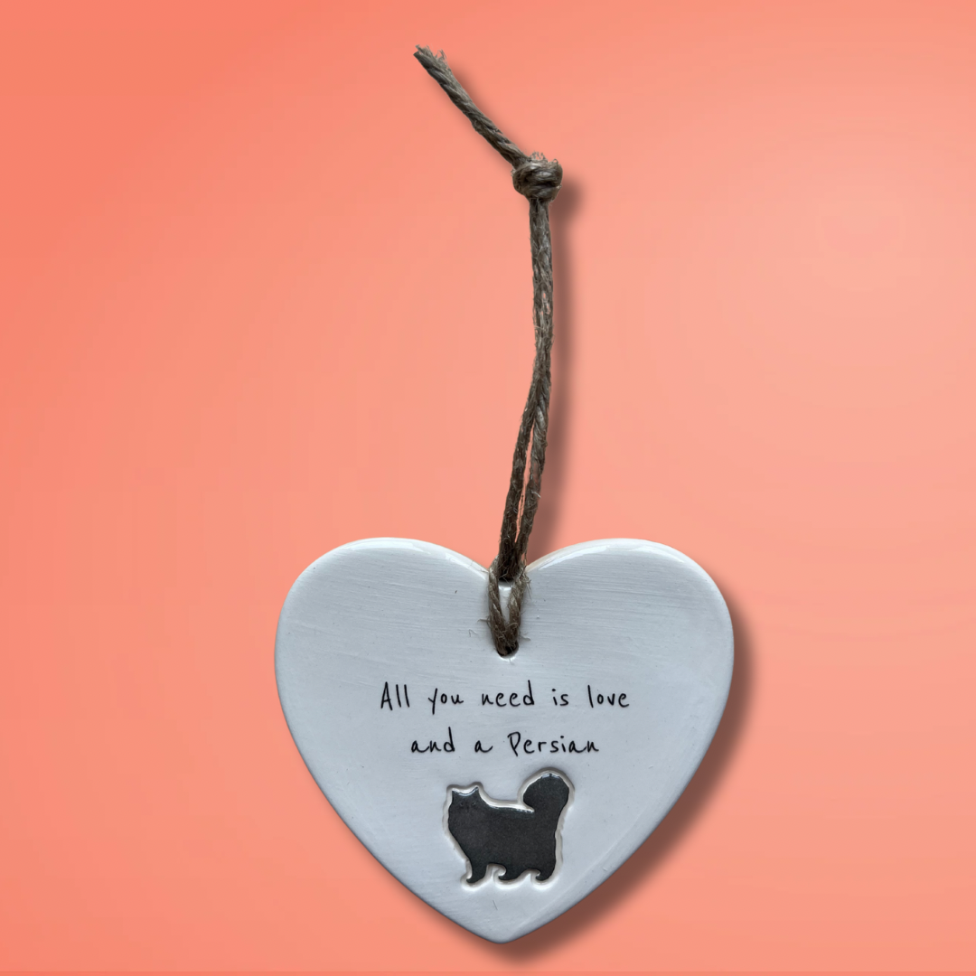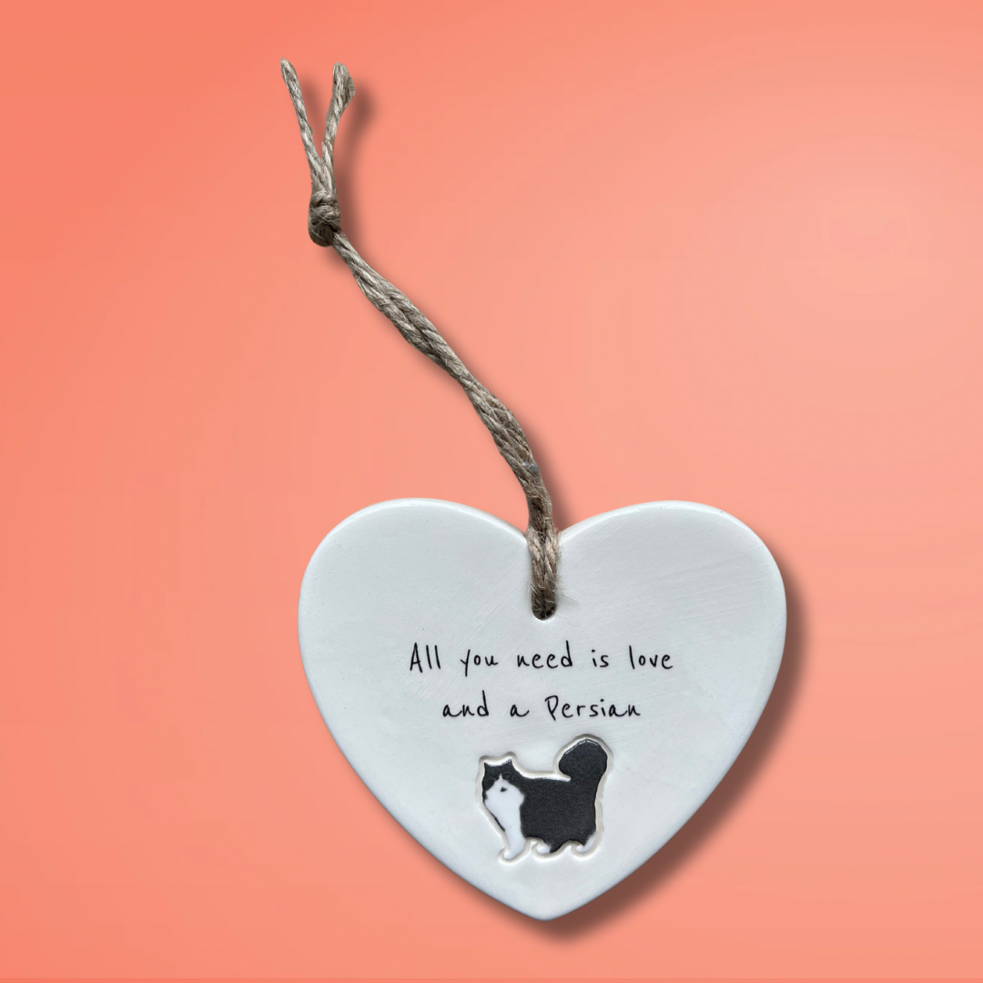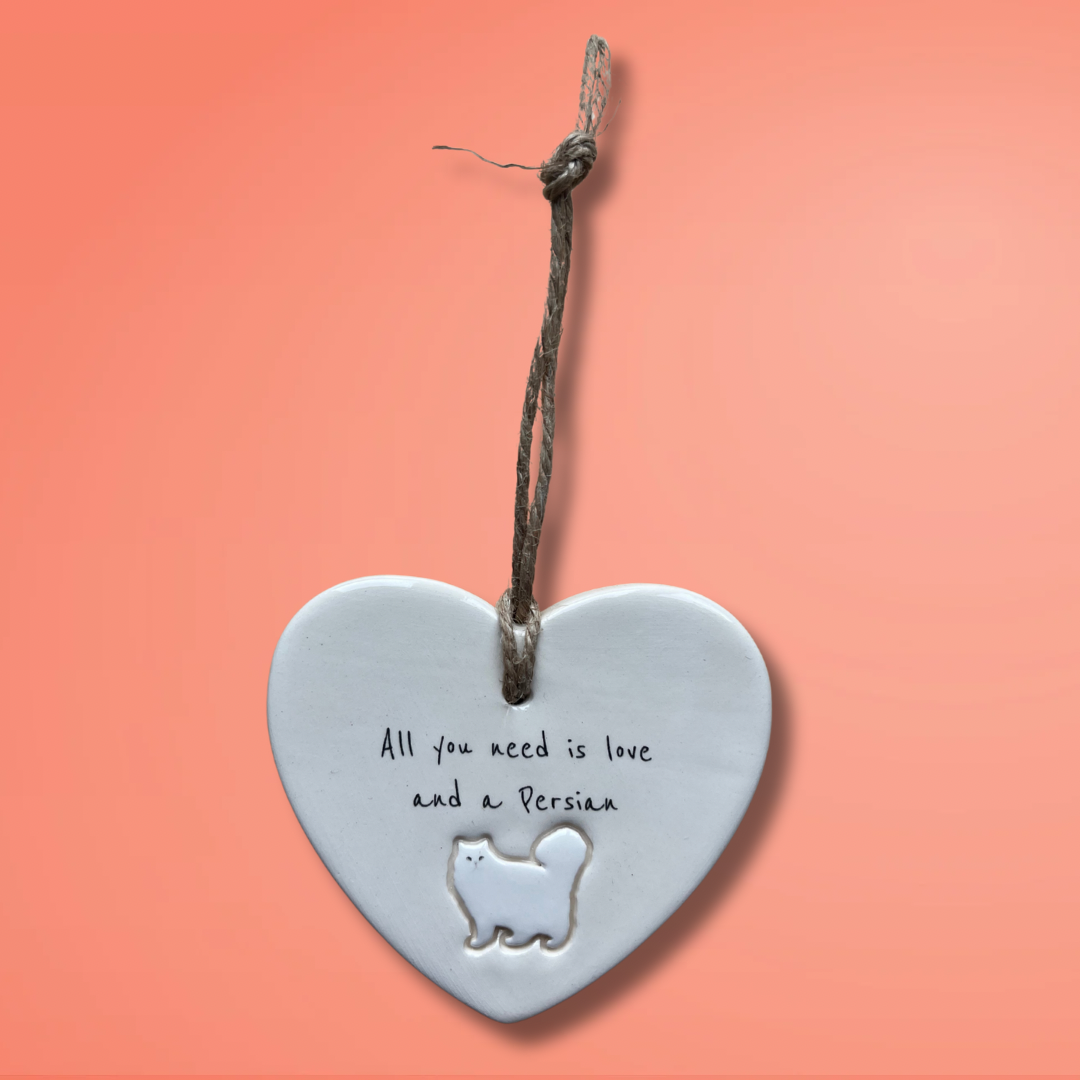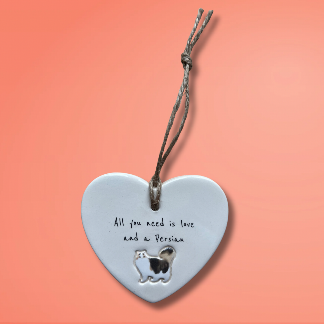 Bring a touch of feline charm to your home or surprise a loved one with this adorable 'All you need is love and a Scottish Fold' ceramic heart ornament. Designed and Handcrafted in our Northumberland studio using the finest earthenware clay.